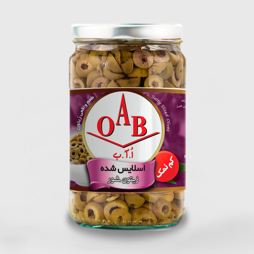 زیتون شور اسلایس شده کم نمک OAB – شیشه 1000 گرمی