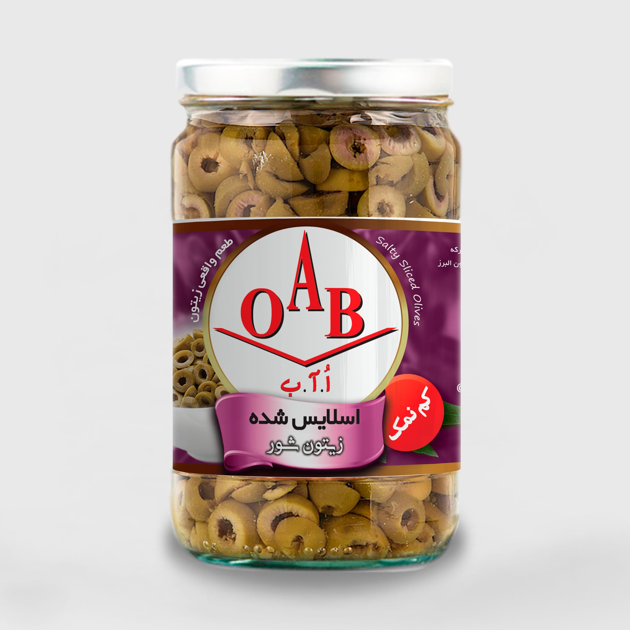 زیتون شور اسلایس شده کم نمک OAB – شیشه 1000 گرمی۱۹۰٬۰۰۰ 13%