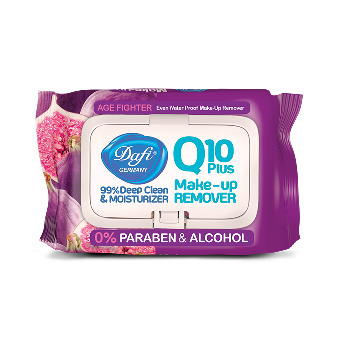 دستمال مرطوب Q10 دافی، فاقد الکل، صابون و پارابن بوده و حاوی عصاره بلوبری و ویتامین E برای روشنکنندگی و شفافسازی پوست میباشد. این دستمال مرطوب آرایش پاککن، همچنین نقش ضدالتهابی داشته و برای صورت و چشم مناسب است. این محصول با قدرت بالا در آبرسانی و پاککنندگی، از ایجاد پیری زودرس و ایجاد منافذ باز ناشی از مواد آرایشی جلوگیری میکند.