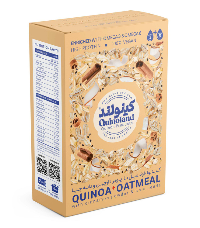 • مناسب برای افراد با رژیمهای غذایی خاص: کینوآ اوتمیل، فاقد گلوتن، لبنیات و شکر افزوده است و برای افراد گیاهخوار، وگان و افراد دارای حساسیت غذایی مناسب است.