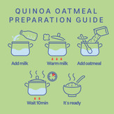 • تنوع بینظیر: کینوآ+اوتمیل با پودر زنجبیل و دانه چیا را میتوانید به روشهای مختلف میل کنید. میتوانید آن را به تنهایی با شیر یا آب گرم میل کنید و یا از میوههای تازه، مغزها، عسل، شیره خرما یا انگور برای طعمدار کردن و مغذیتر کردن آن استفاده کنید.