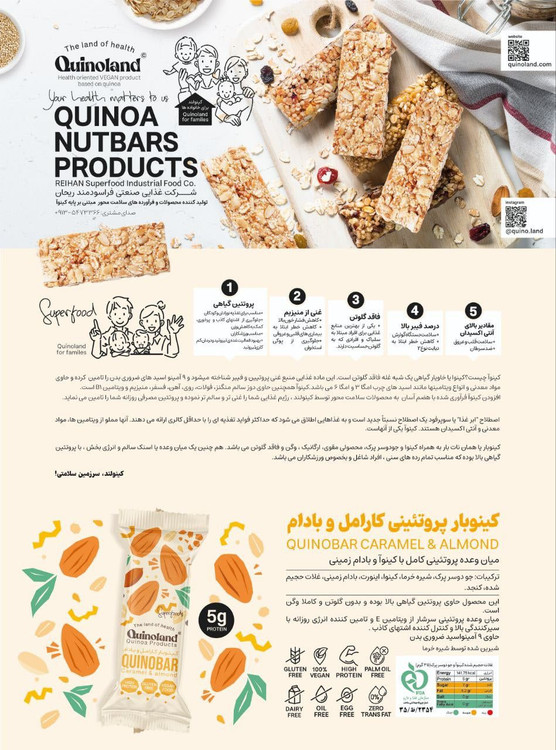 • میان وعده پروتئینی کامل با کینوآ، قهوه و بِری به دلیل عدم وجود مواد افزودنی و طعم دهندههای مصنوعی، برای افراد با سلیقههای مختلف و همچنین افراد مبتلا به آلرژیهای غذایی مناسب است.