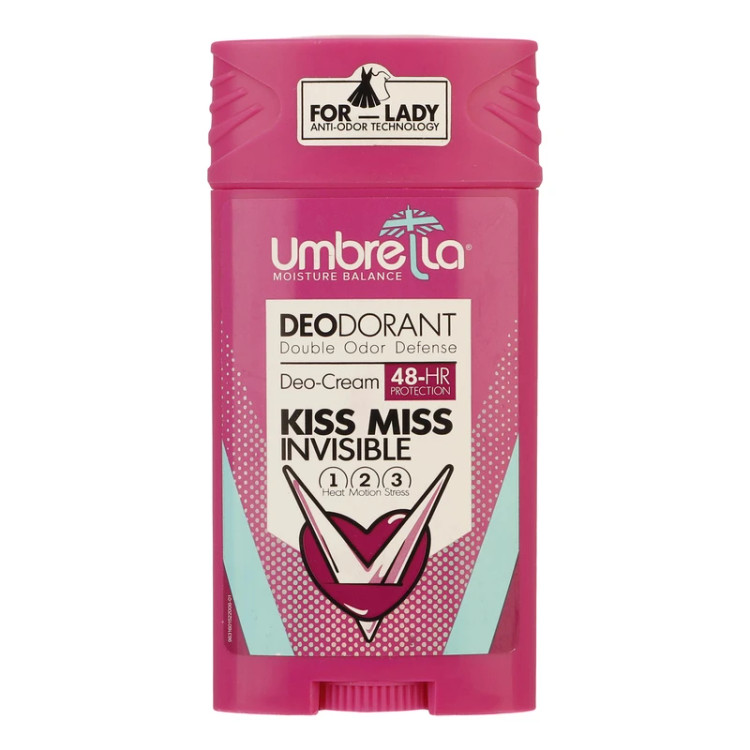 استیک دئودورانت کرمی زنانه کیس میس آمبرلا بدون ایجاد رد روی لباس و با جذب سریع باعث محافظت در برابر بوی تعریق و ایجاد حس تازگی و شادابی در طول کل روز می شود.این محصول فاقد الکل، آلومینیوم و پارابن می باشد و همچنین به علت داشتن روغن گیاهی ،گلیسیرین ،شی باتر و روغن ناگریل مانع حساسیت پوستی و باعث نرم شده پوست می گردد.همچنین این محصول به علت اینکه فاقد الومینیوم است مانع از تیره شدن پوست در طولانی مدت می شود.استیک ضد تعریق آمبرلا با رایحه دلنشین وانیلی ،آدامسی تا 48 ساعت شمارا از شر هر گونه بوی بد خلاص می کند و باعث کنترل تعریق می گردد.