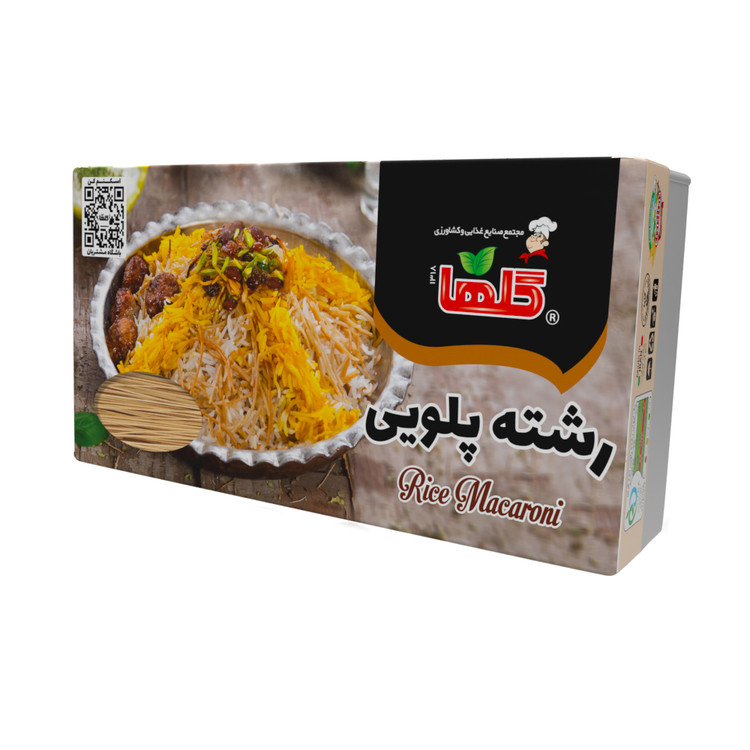شته پلویی 340 گرمی گلها در بسته بندی های جعبه ای، با استفاده از بهترین مواد در مجتمع صنایع غذایی و کشاورزی گلها تهیه و به بازار عرضه میشود رشته پلویی گلها به راحتی پخته می شود و بدون وا رفتن و له شدن، فرم خود را در پلو حفظ می کند.