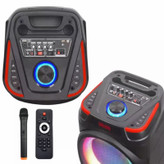 شرکت NDR با بیش از 25 سال سابقه در زمینه عرضه لوازم جانبی گیمینگ و صوتی و تصویری و ... در قاره های های آسیا ، اروپا با ارائه بیش از 600 دستگاه ، فعالیت گسترده دارد ، مجموعه کامل اسپیکر دارای اکو و میکروفون بی سیم با کیفیت پخش و ضبط بسیار عالی مدل X910 یکی از این محصولات است . مدل X910 با داشتن چراغ های LED و نورپردازی مدرن آن به مراتب هیجان مهمانی را بالا برده و شما را در تمام طول شب سرگرم می کند. ترکیب کیفیت صدای استثنایی با یک ارائه نور LED خیره کننده رویداد شما را به سطح بالاتری می رساند. میکروفون یا میکروفون بی سیم می تواند برای گفتار یا آواز یا کنسرت زنده (کارائوکه) استفاده شود زیرا می توانید موسیقی را از طریق پورت USB پخش کنید وبا استفاده از میکروفن بی سیم از راه دور موجود می توانید از راحتی بیشتری برخوردار شوید و قادر به تنظیم هر یک از عملکردهای پخش کننده MP3 ، از جمله بی صدا ، میزان صدا ، حالت ، EQ ، ضبط ، انتخاب آهنگ ها و غیره باشید. پخش بی سیم صوتی WIRELESS - ورودی USB داخلی و ورودی TF گزینه های بسیار خوبی برای پخش موسیقی شما هستند. استفاده از یکپارچه سازی بلوتوث بسیار آسان است و بسیار قابل اعتماد است . این اسپیکر دارای دوباند میدرنج به سایز 10 اینچ میباشد . همچنین این مدل علاوه بر شارژ شدن با برق خانگی میتواند با تبدیل موجود در تجهیزات جانبی همراه به برق 12 ولت مانند باطری خودرو شارژ شود.