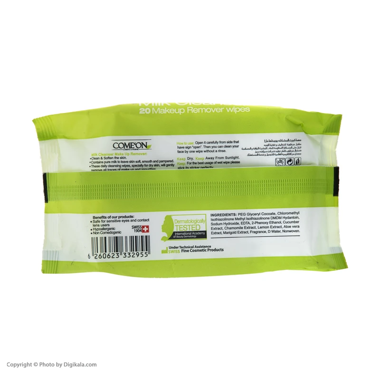 دستمال مرطوب تخصصی شیرپاکن کامان (Comeon Milk Cleanser Wet Wipes)، راهکاری بهداشتی و سریع برای پاکسازی آرایش، آلودگی و چربی اضافی پوست بدون نیاز به شستوشو است. این دستمالها با فرمولاسیونی ملایم و مغذی متشکل از عصارههای طبیعی مانند خیار، گل بابونه، لیمو، آلوئهورا و ماریگَلد و ترکیب ویتامینهای A و E، ضمن پاکسازی پوست، آن را آبرسانی، تسکین و تقویت میکنند.