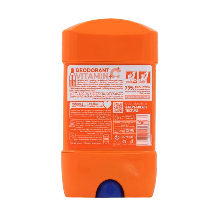 ویتامین C به عنوان یک آنتیاکسیدان شناختهشده، نقش مهمی در روشنتر شدن و شفافیت پوست دارد. وجود این ترکیب در استیک صابونی کامان باعث میشود که تیرگی پوست زیر بغل کاهش یابد و ناحیهای روشن و سالم داشته باشید.