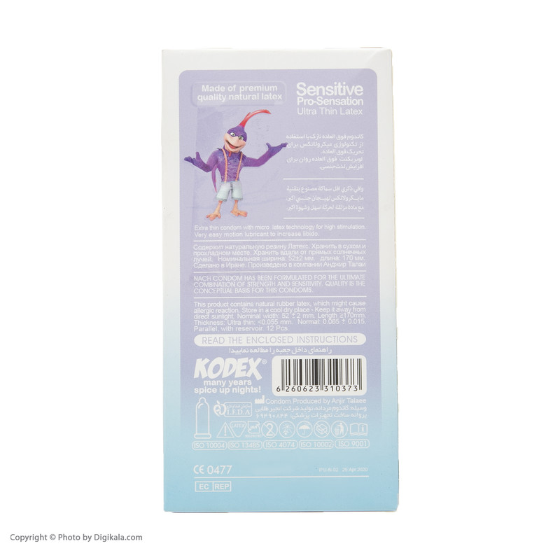 کاندوم کدکس مدل Sensitive Pro-Sensation (حساس) بسته 12 عددی | نازک، ضد حساسیت و با حس طبیعی