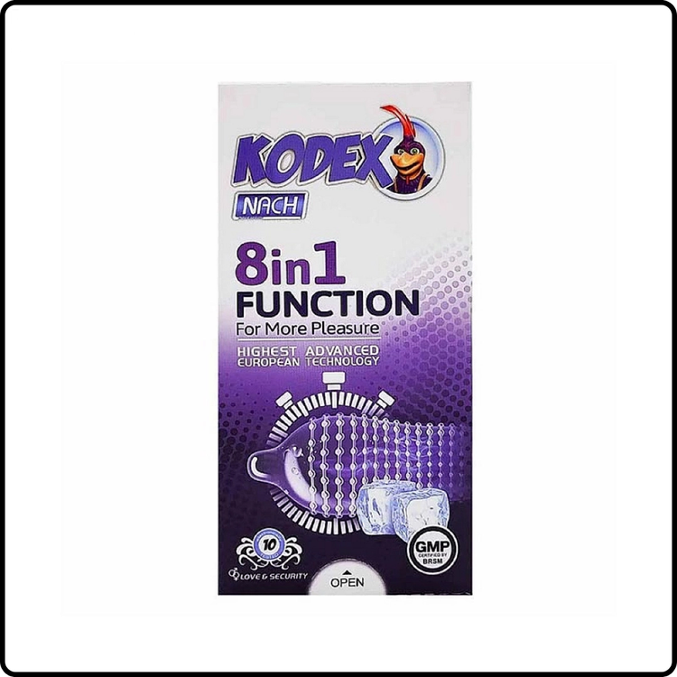 کاندوم کدکس ۸ در ۱ محصولی از برند خوشنام Kodex است که با طراحی چندمنظوره، مجموعهای از ویژگیهای تاخیری، خاردار، شیاردار، گرمکننده، روانکننده و تحریککننده را در خود جای داده است.