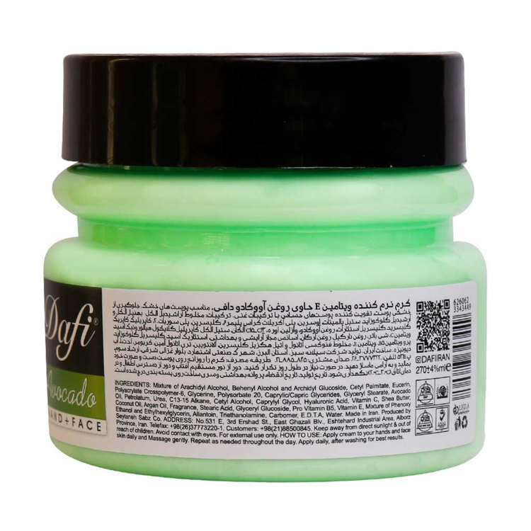 فرمولاسیون ملایم کرم آووکادو دافی فاقد مواد حساسیتزا است و برای استفاده در تمام نواحی بدن از جمله دست، صورت و گردن مناسب میباشد.