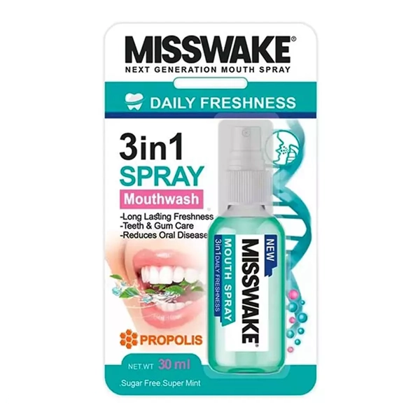 اسپری دهانشویه MissWake Ice Mint راهحلی سریع، طبیعی و ایمن برای خوشبو کردن دهان در هر لحظه است. با خنکی ماندگار و فرمول ضد باکتری، دهان شما همیشه تمیز و خوشبو باقی میماند.