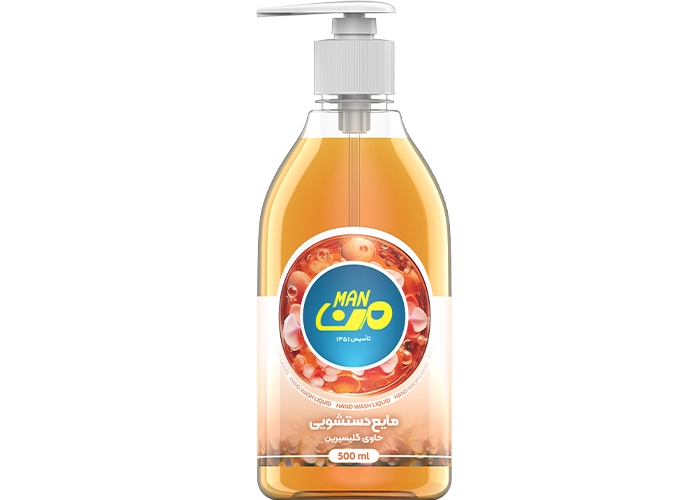 مایع دستشویی گلیسیرینه نارنجی 500 میلی لیتر برند من – نرم کننده و مرطوب کننده پوست
