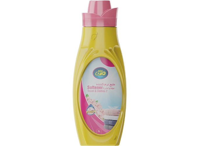 مایع نرم کننده حوله و لباس 1 لیتری طلایی برند من – لطافت و خوشبوئی لباس ها