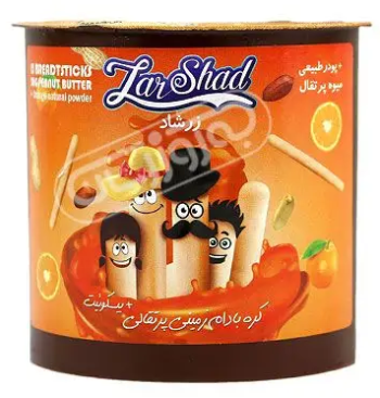 ترکیبات: بادام زمینی - شکر - امولسیفایر - نمک - پودر میوه پرتقال - بیسکوئیت