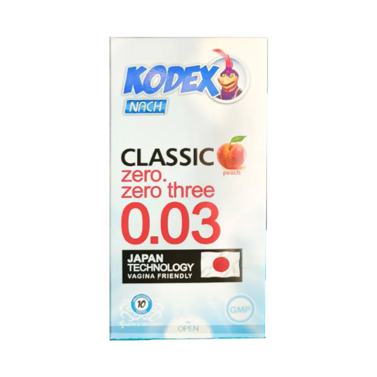 کاندوم کلاسیک کدکس مدل 03 ( 3 میکرون ) رایحه هلو بسته 10 عددی - خرید عمده