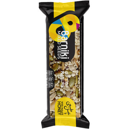ترکیبات: مخلوط دانه ها: مغز تخمه کدو، کشمش، بادام زمینی، کنجد، عسل، مغز تخمه آفتابگردان، گلوکوز گندم، فرآورده حجیم شده بر پایه برنج، تخم کتان، فیبر ریشه کاسنی