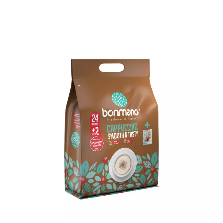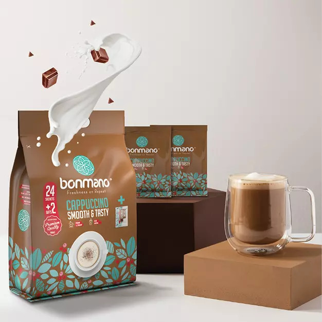 کاپوچینو ساشه ای بن مانو تشکیل شده از پودر قهوه فوری، پودر شکر سفید، فومر و پودر خامهای کننده غیرلبنی است به علت غیر لبنی بودن پودر خامه این محصول مناسب افرادی است که مشکل تحمل لاکتوز دارند.این محصول دارای کالری بسیار کمی است و در هر ساشه 25 گرمی دارای 2.02 گرم قند است که این محصول به محصولی کم کالری با قند بسیار کم تبدیل میکند و انتخاب مناسبی برای افراد دیابتی و ورزشکاران و افرادی است که از رژیم های کم کالری و بدون قند پیروی میکنند.