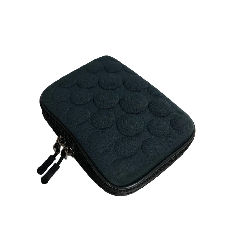 این محصول بدنهای از جنس پلیاستر دارد و در داخل آن پدهای ضربهگیر به کار رفته است. این محصول در برابر آب و ضربه مقاوم است. معمولا همراه با هارد، لوازم جانبی مانند کابل هم وجود دارد. در این کیف یک محفظهی اصلی برای نگهداری هارد و یک جیب توری برای نگهداری کابل و دیگر لوازم از این قبیل وجود دارد