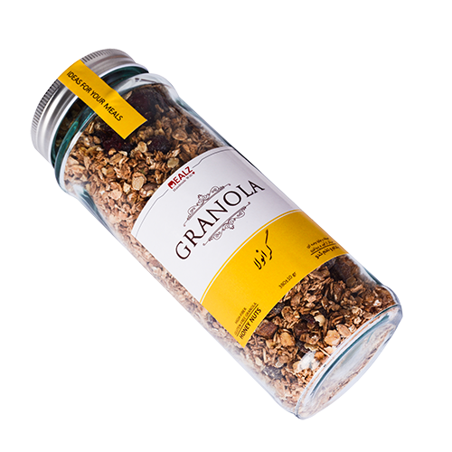 گرانول به معنی دانه است، گرانولا معمولا از غلات (اکثرا جو دوسر)، عسل رقیق شده، آجیل و در نهایت میوه خشک تهیه می شود.گرانولا در انگلیسی Granola یک نوع از انواع غذاها به شمار می آید که معمولاً برای صبحانه یا به عنوان میان وعده مصرف می شود. این خوراکی سالم و انرژی زا، ترکیبی از مغزها،جو دوسر پرک، خشکبار و عسل می باشد که بسیار مقوی و مفید است و می تواند یک گزینه عالی و خوشمزه به عنوان میان وعده باشد. گرانولا به دلیل دارا بودن مواد مفید و مغذی تبدیل به یکی از میان وعده های پرطرفدار شده است. این محصول محبوب معمولا در وعده صبحانه مصرف می شود و می تواند انرژی شما را تا آخر روز بالا نگه دارد.