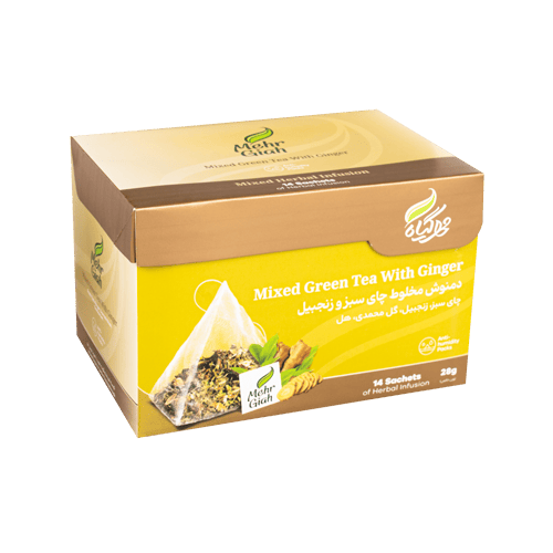 دمنوش چای سبز و زنجبیل تی بگ 14 عددی مهر گیاه